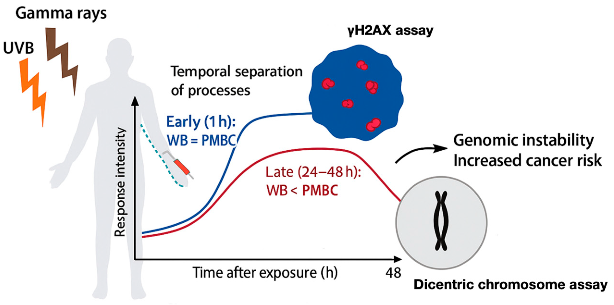 Gkikoudi, A.; Adamopoulou, A.; Diamadaki, D.; Matsades, P.; Tzakakos, I.; Triantopoulou, S.; Vasilopoulos, S.N.; Manda, G.; Terzoudi, G.I.; Georgakilas, A.G. Synergistic Genotoxic Effects of Gamma Rays and UVB Radiation on Human Blood. Antioxidants 2025, 14, 1451. https://doi.org/10.3390/antiox14121451