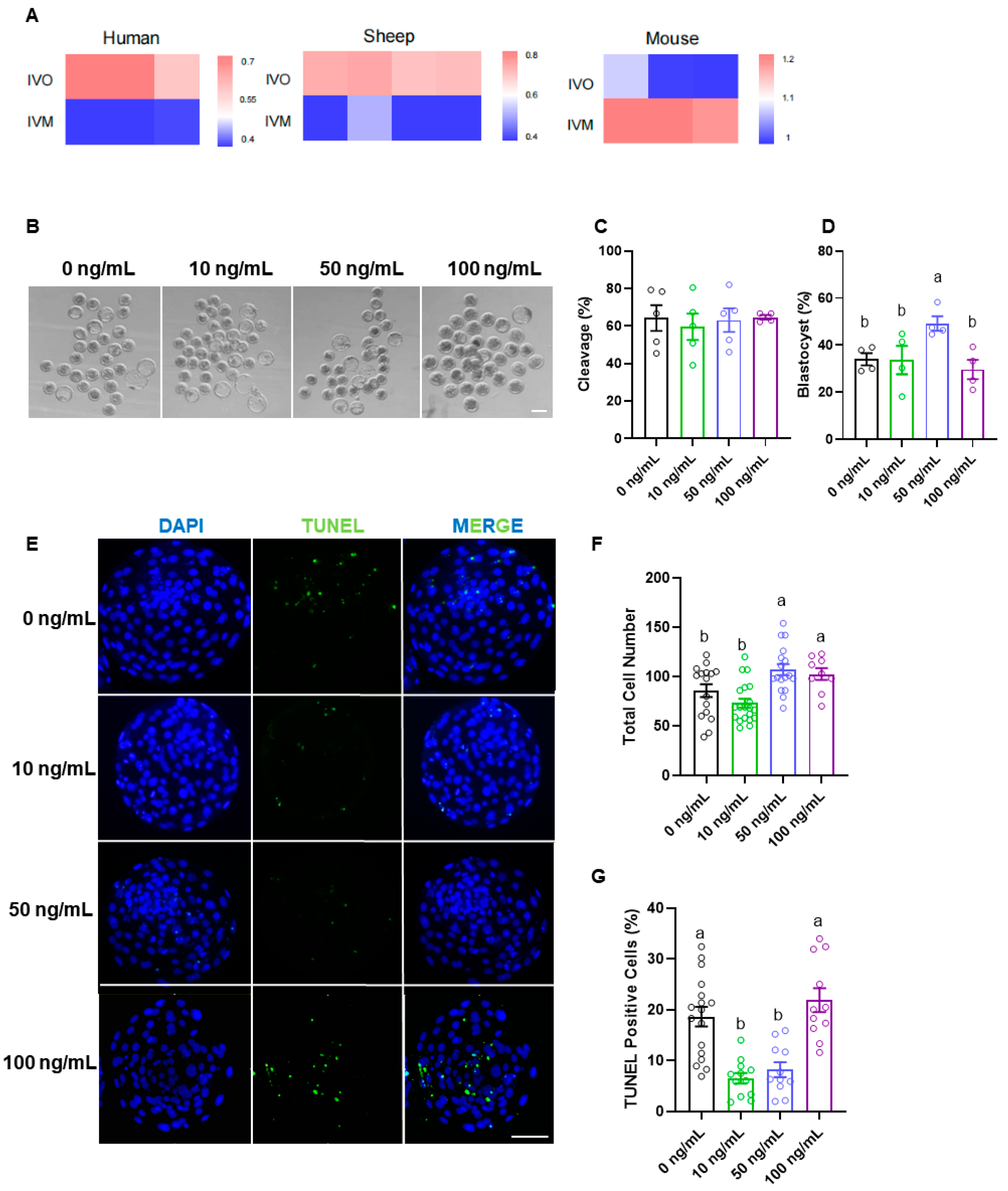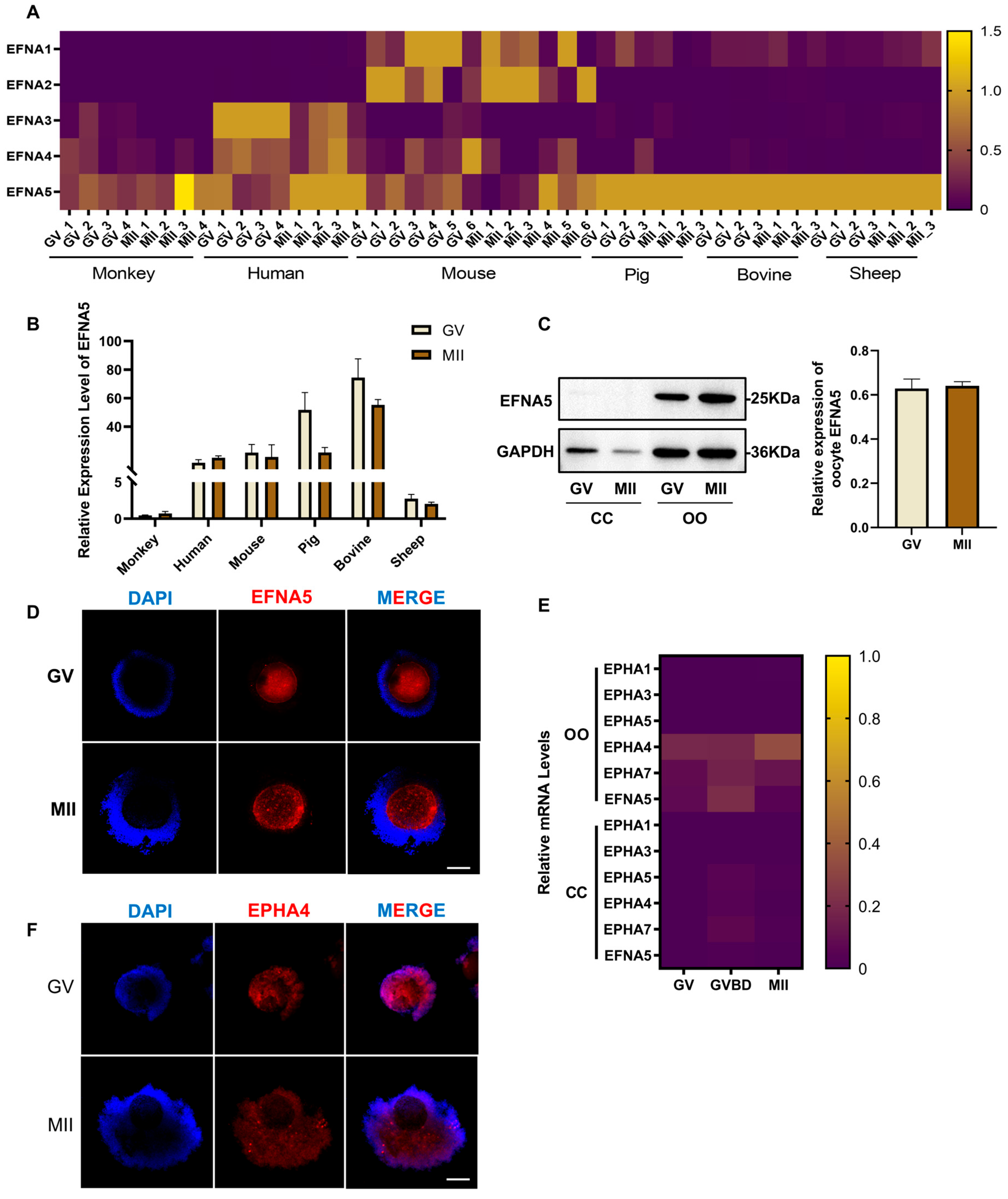 3.2. EFNA5 Enhances In Vitro-Matured Oocyte Developmental Potential