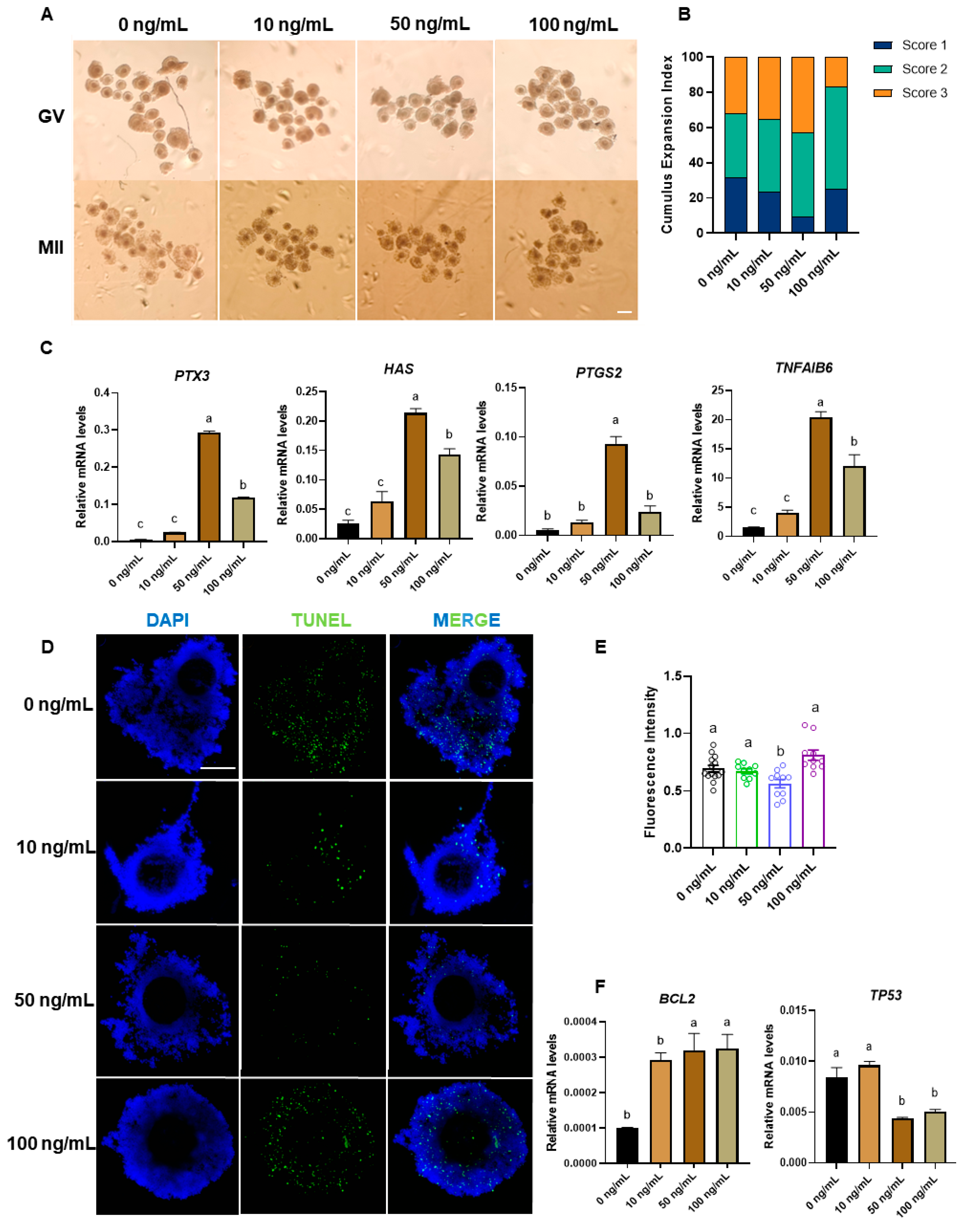 - Xie, J.; Xu, X.; Liu, S. Intercellular communication in the cumulus–oocyte complex during folliculogenesis: A review. Front. Cell Dev. Biol. 2023, 11, 1137787. [Google Scholar] [CrossRef]