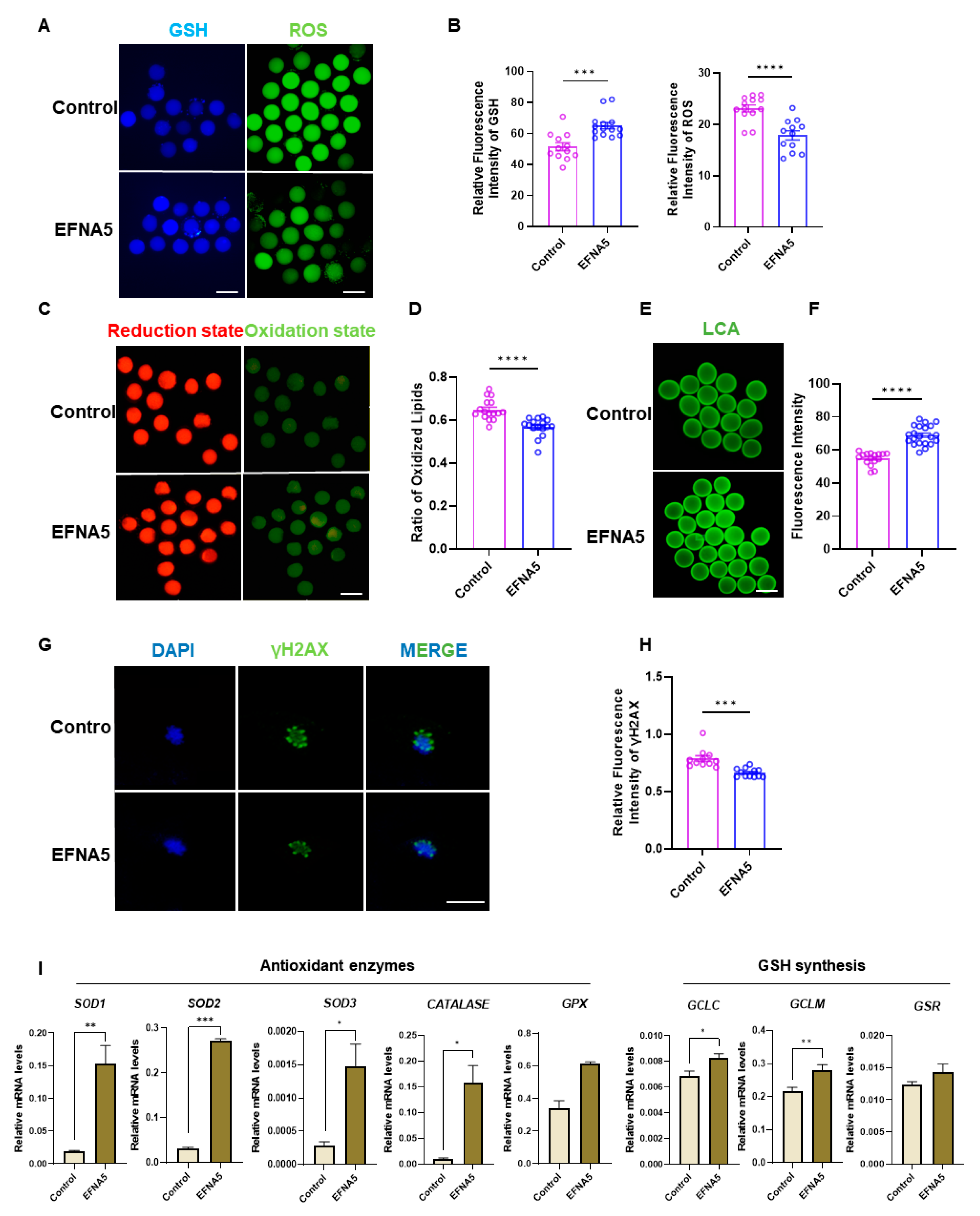 3.5. EFNA5 Enhances Oocyte Redox Homeostasis