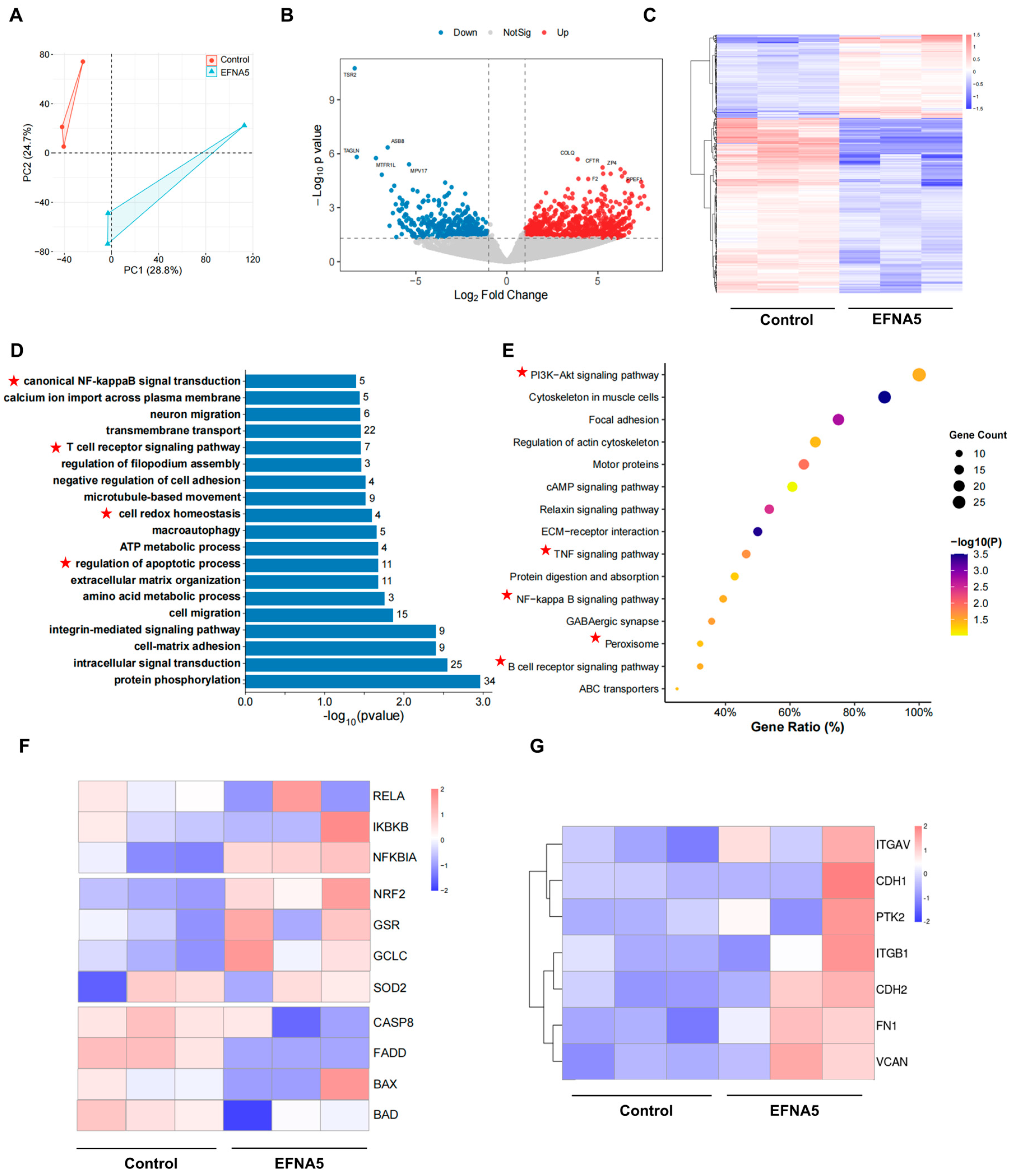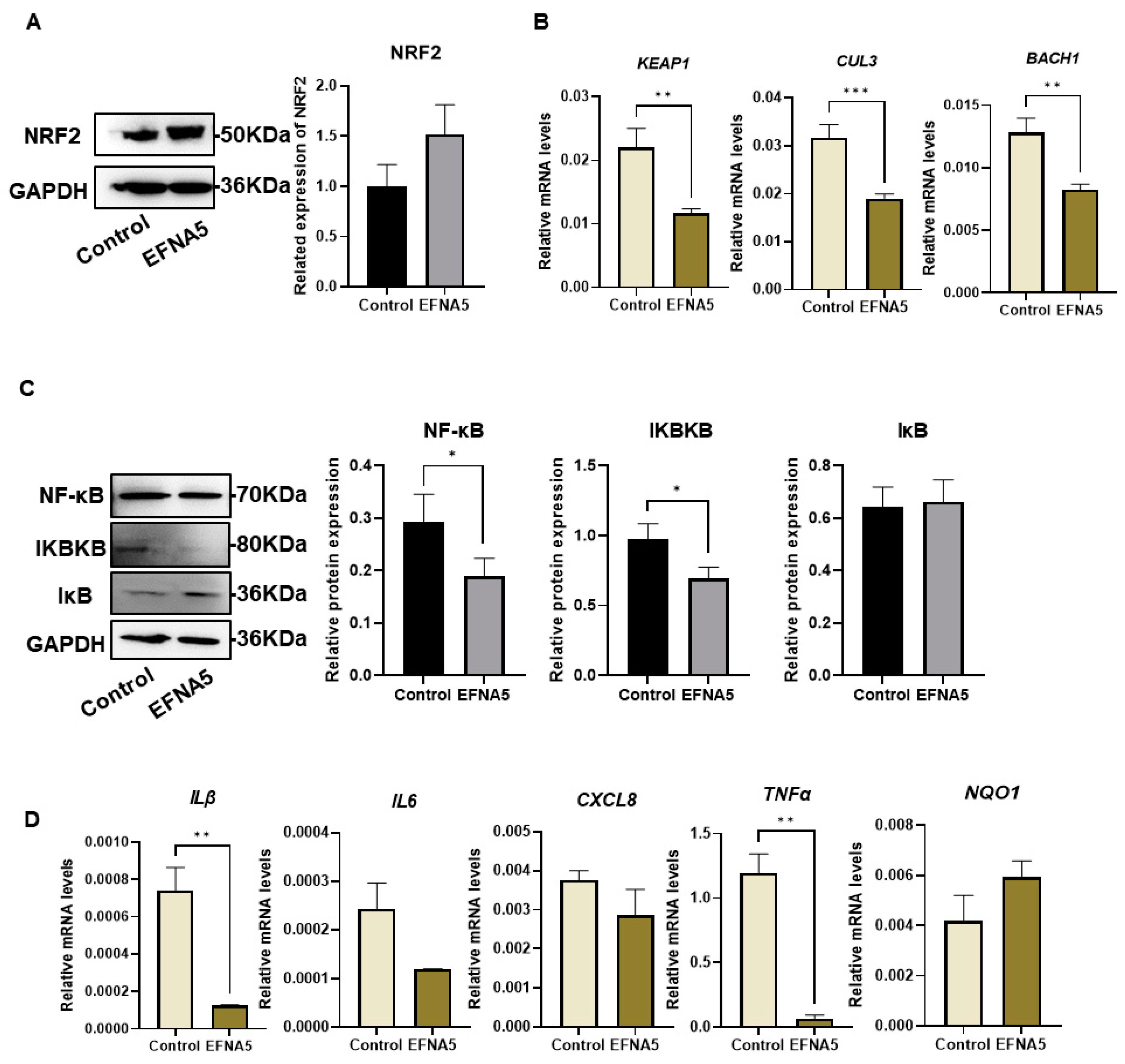 3.7. EFNA5 Regulates NRF2 and NF-κB Signaling in COCs
