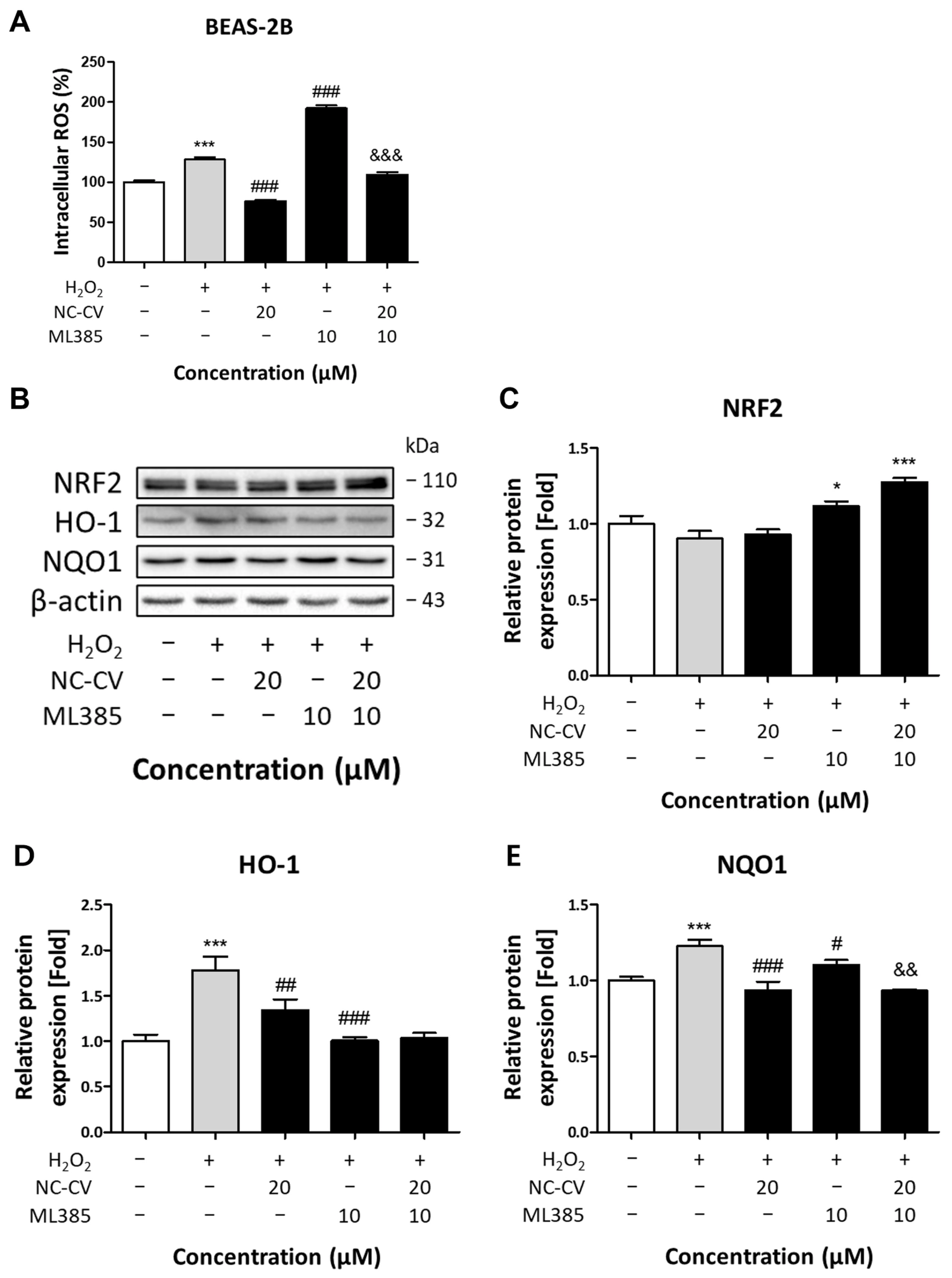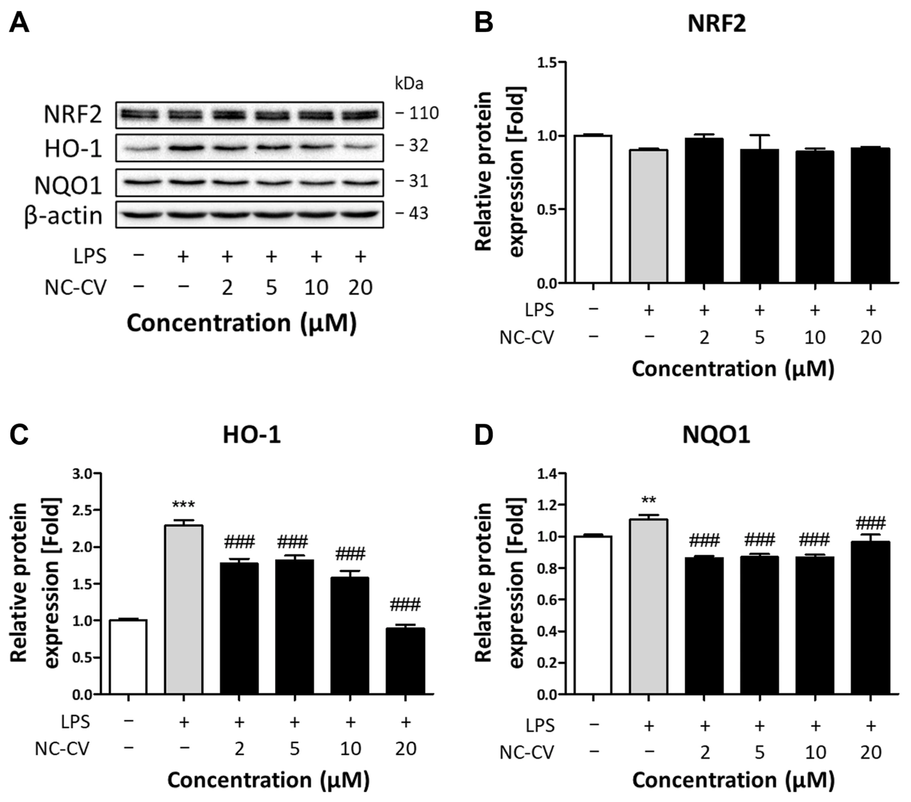 3.5. Effect of NC-CV on NRF2 and Antioxidant Enzymes
