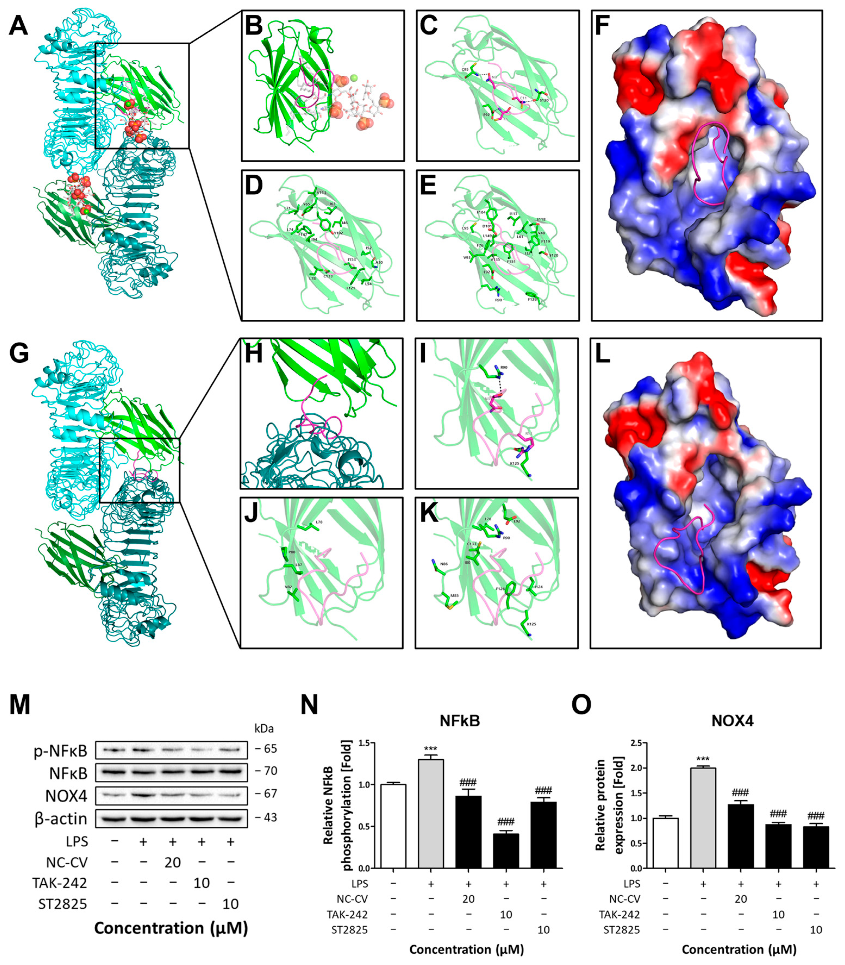 3.6. Inhibition of TLR4 Dimerization by NC-CV Leads to Anti-Inflammatory and Antioxidative Effects