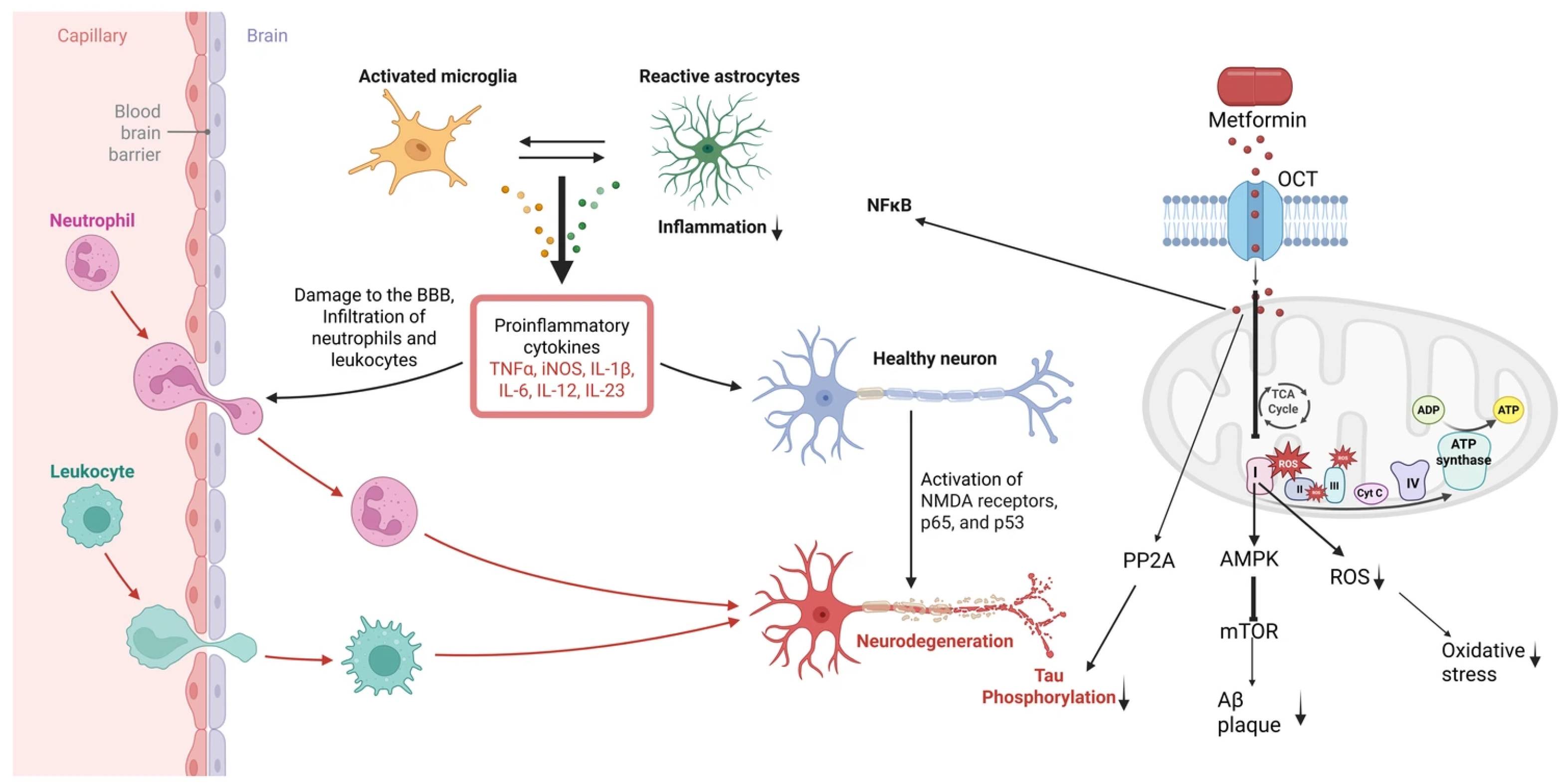 - Geranmayeh, M.H.; Rahbarghazi, R.; Saeedi, N.; Farhoudi, M. Metformin-dependent variation of microglia phenotype dictates pericytes maturation under oxygen-glucose deprivation. Tissue Barriers 2022, 10, 2018928. [Google Scholar] [CrossRef] [PubMed]