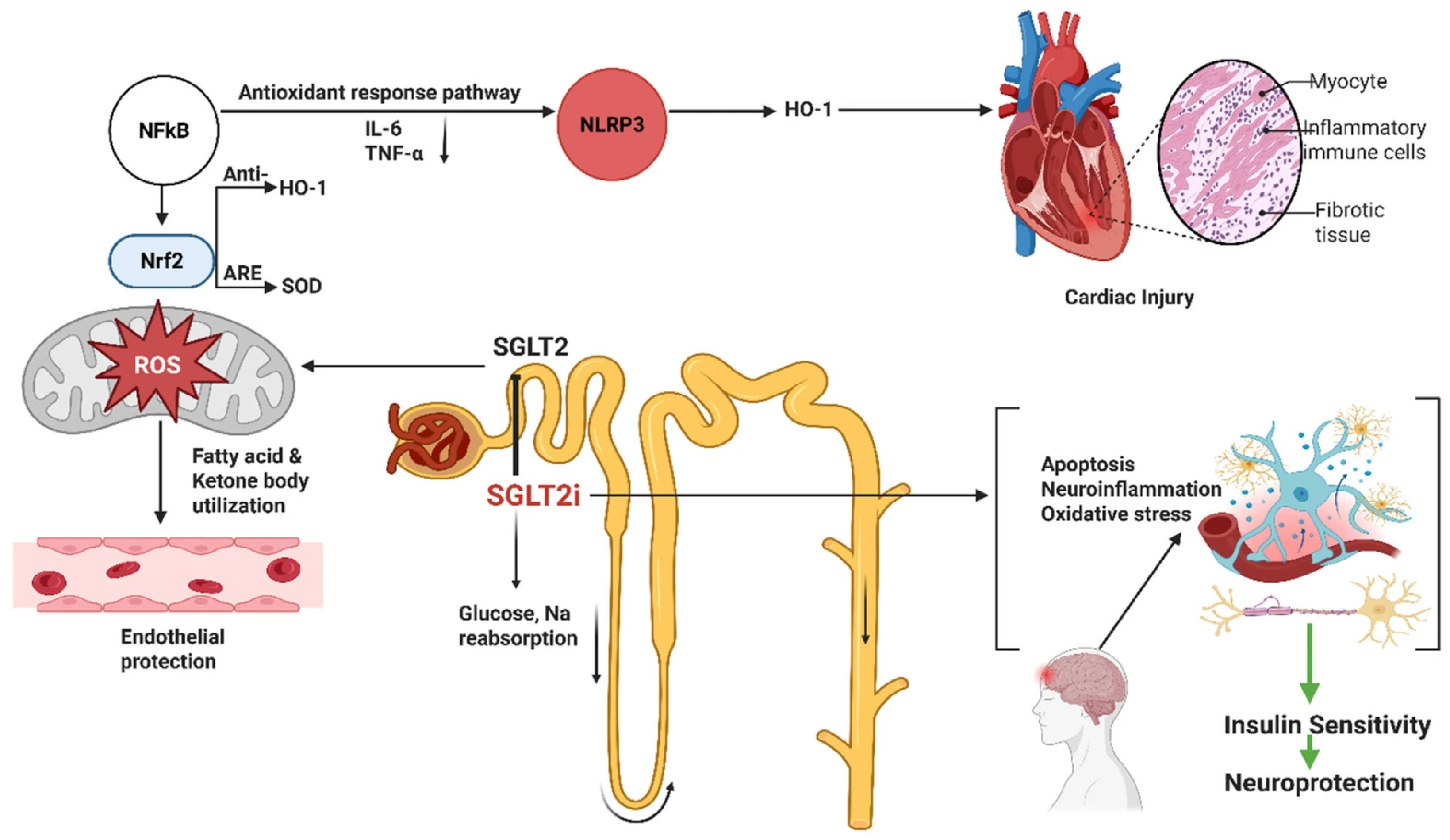 - Chen, Y.R.; Zhu, F.Y.; Zhou, R. SGLT2 inhibitors for alleviating heart failure through non-hypoglycemic mechanisms. Front. Cardiovasc. Med. 2024, 11, 1494882. [Google Scholar] [CrossRef] [PubMed]