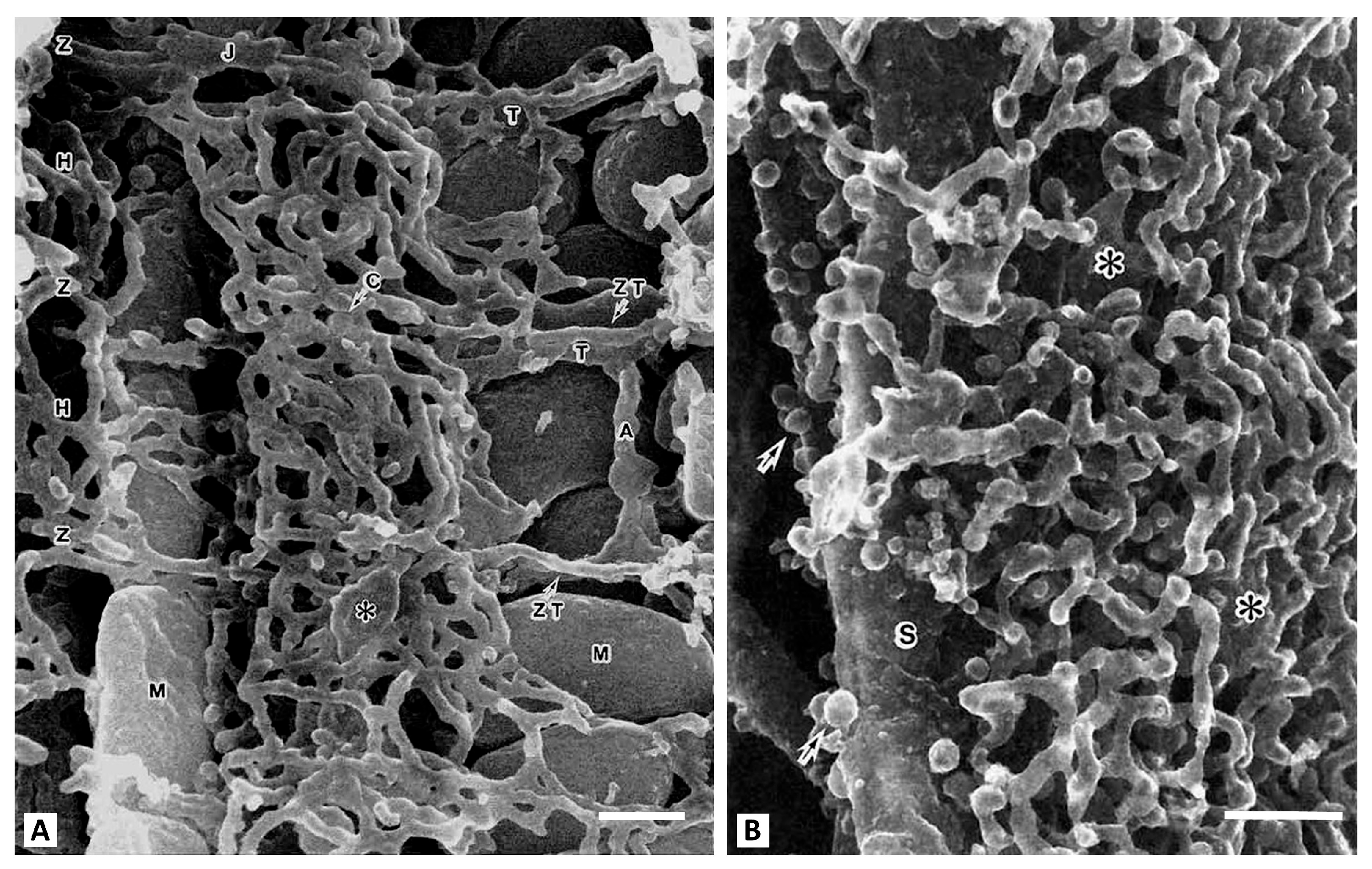 - Ogata, T.; Yamasaki, Y. High-resolution scanning electron microscopic studies on the three-dimensional structure of the transverse-axial tubular system, sarcoplasmic reticulum and intercalated disc of the rat myocardium. Anatom. Rec. 1990, 228, 277–287. [Google Scholar] [CrossRef]