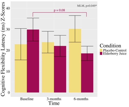APA StyleMusich, M., Curtis, A. F., Ferguson, B. J., Drysdale, D., Thomas, A. L., Greenlief, C. M., Shenker, J. I., & Beversdorf, D. Q. (2025). Preliminary Effects of American Elderberry Juice on Cognitive Functioning in Mild Cognitive Impairment Patients: A Secondary Analysis of Cognitive Composite Scores in a Randomized Clinical Trial. Antioxidants, 14(2), 131. https://doi.org/10.3390/antiox14020131