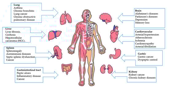 Schema illustrating human diseases caused by oxidative stress [17,18,19,20,21,22,23].