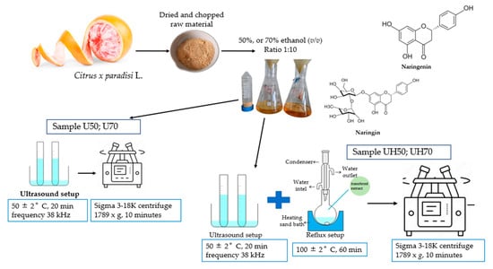 - Stabrauskiene, J.; Marksa, M.; Ivanauskas, L.; Bernatoniene, J. Optimization of Naringin and Naringenin Extraction from Citrus × paradisi L. Using Hydrolysis and Excipients as Adsorbent. Pharmaceutics 2022, 14, 890. [Google Scholar] [CrossRef] [PubMed]