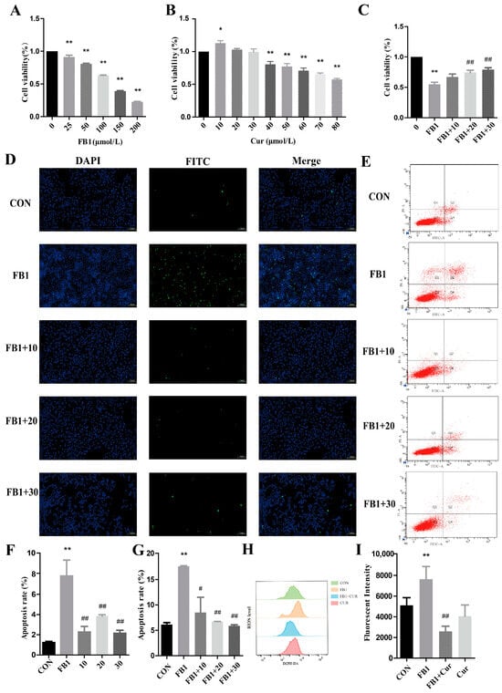 3.1. Curcumin Alleviates FB1-Induced Apoptosis in Porcine Kidney Cells