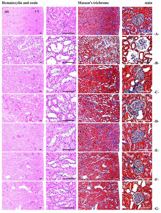 3.5.2. Effects of BCS on Serum BUN, Creatinine Levels, and Kidney Histopathology