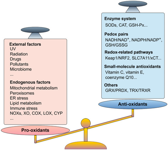 Pro-oxidants and anti-oxidants that maintain redox homeostasis in cells. Under normal physiological conditions, basic redox metabolism occurs in the body, and the oxidative and antioxidant capacities are in balance. When the oxidative system and antioxidant system are out of balance, cells experience stress and dysfunction.