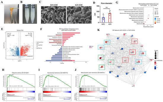 3.3. ALFC-ECM Contains More Mitochondria and Redox-Related Proteins than DLFC-ECM