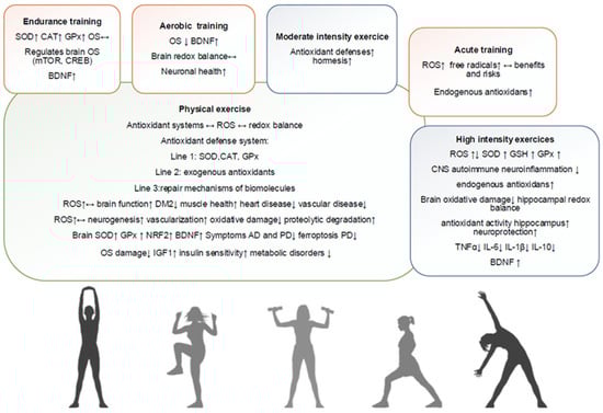 159. Souza, J.; da Silva, R.A.; da Luz Scheffer, D.; Penteado, R.; Solano, A.; Barros, L.; Budde, H.; Trostchansky, A.; Latini, A. Physical-Exercise-Induced Antioxidant Effects on the Brain and Skeletal Muscle. Antioxidants 2022, 11, 826. [Google Scholar] [CrossRef] [PubMed]
