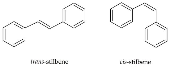 Plant-based antioxidants, including stilbenes, have gained attention because of their beneficial biological activities and clinical potential. Stilbenes are naturally occurring low-molecular-weight compounds belonging to the group of stilbenoids (Figure 1) [1]. Stilbenoids are a subgroup of plant polyphenols. They are classified into stilbenes, oligostilbenes, bibenzyls, bisbibenzyls, phenanthrenes, and dihydrophenanthrenes (Figure 1) [1,2]. The chemical structure of stilbenoids is based on the chemical structure of stilbene (1,2-diphenylethylene; 1,2-diarylethene) comprising two aromatic rings linked by an ethylene bridge (Figure 2). The type, number, and position of substituents on the aromatic rings determine the chemical properties as well as biological activities of these compounds. Stilbenes exist in two isomeric forms: cis (Z) and trans (E). The trans isomers are usually more stable, more common, and exhibit higher biological activities than the cis isomers.