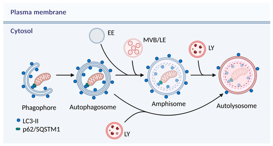 Overview of macroautophagy. EE—early endosome, MVB/LE—multivesicular body/late endosome; LY—lysosome. Created in BioRender.com.