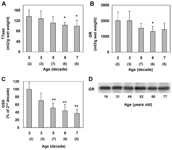 - Xing, K.-Y.; Lou, M.F. Effect of age on the thioltransferase (glutaredoxin and thioredoxin systems in the human lens. Investig. Ophthalmol. Vis. Sci. 2010, 51, 6598–6604. [Google Scholar]
