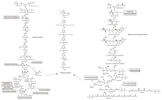 - Zhou, L.; Wang, J.Y.; Wu, J.; Wang, J.; Poplawsky, A.; Lin, S.; Zhu, B.; Chang, C.; Zhou, T.; Zhang, L.H.; et al. The diffusible factor synthase XanB2 is a bifunctional chorismatase that links the shikimate pathway to ubiquinone and xanthomonadins biosynthetic pathways. Mol. Microbiol. 2013, 87, 80–93. [Google Scholar] [CrossRef]