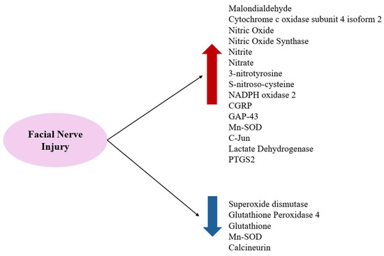 FRs and ROS increase after facial nerve injuries and antioxidant-related substances decrease.