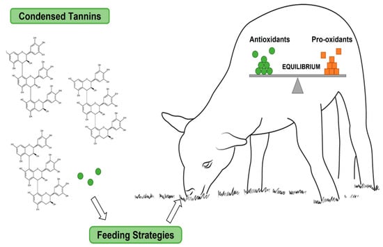 59. Soldado, D.; Bessa, R.J.B.; Jerónimo, E. Condensed Tannins as Antioxidants in Ruminants—Effectiveness and Action Mechanisms to Improve Animal Antioxidant Status and Oxidative Stability of Products. Animals 2021, 11, 3243. [Google Scholar] [CrossRef]