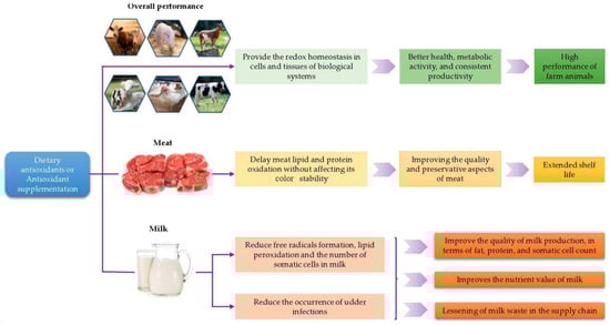 49. Ponnampalam, E.N.; Kiani, A.; Santhiravel, S.; Holman, B.W.B.; Lauridsen, C.; Dunshea, F.R. The Importance of Dietary Antioxidants on Oxidative Stress, Meat and Milk Production, and Their Preservative Aspects in Farm Animals: Antioxidant Action, Animal Health, and Product Quality—Invited Review. Animals 2022, 12, 3279. [Google Scholar] [CrossRef]