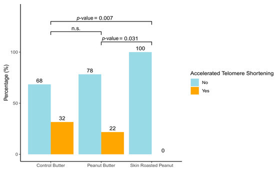 Therefore, building on data from the ARISTOTLE study (NCT04324749), a randomized controlled trial involving healthy young participants aged 18 to 33 years, this study aimed to explore the impact of daily consumption of skin-roasted peanuts (SRP) and peanut butter (PB) in preventing telomere shortening in young, healthy individuals.