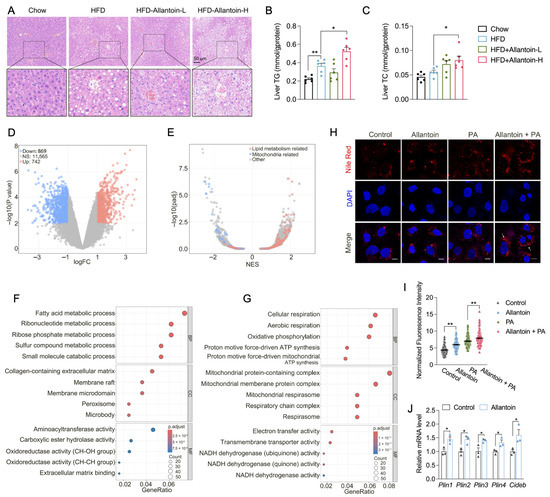 3.4. Allantoin Aggravates Hepatic Lipid Accumulation in Mice Feeding HFD