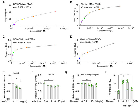 3.6. Allantoin Is Potential Endogenous PPARα Antagonist