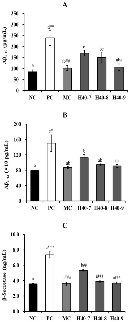 3.2. Effect of Probiotic H40 on Amyloid b40, Amyloid b42, and b-Secretase in Hippocampal Tissue