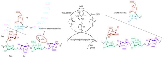 Thus, the proposed route of the TEMPO-catalyzed oxidation of the isolated galactoglucomannan is shown in Figure 4.