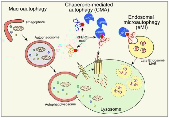 - Jafari, M.; McCabe, M.; Cuervo, A.M. Chaperone-Mediated Autophagy: Mechanisms and Physiological Relevance. Curr. Opin. Physiol. 2022, 30, 100597. [Google Scholar] [CrossRef]
