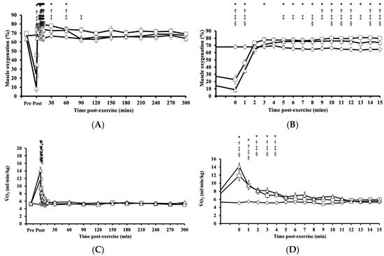 3.3. Muscle Oxygenation Level and Post-Exercise Responses to HIRE and LIBFR Resistance Exercise