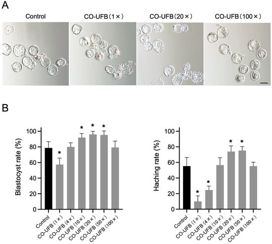 3.2. Effect of CO-UFB on Embryonic Development
