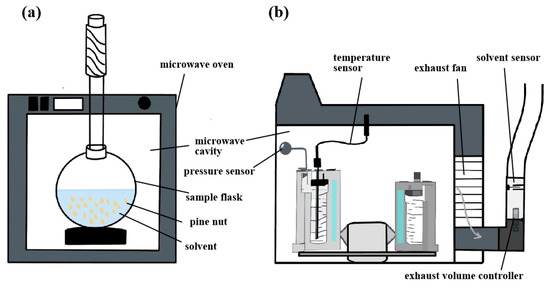 Open microwave-assisted extraction device (a) and closed microwave-assisted extraction device (b). (The effect of MAE is significantly affected by microwave power and heating time).