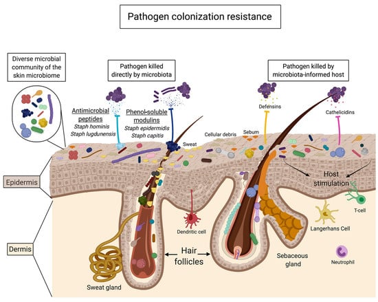 Mechanisms of pathogen colonization resistance mediated by the skin microbiota (reproduced with permission from [3]).