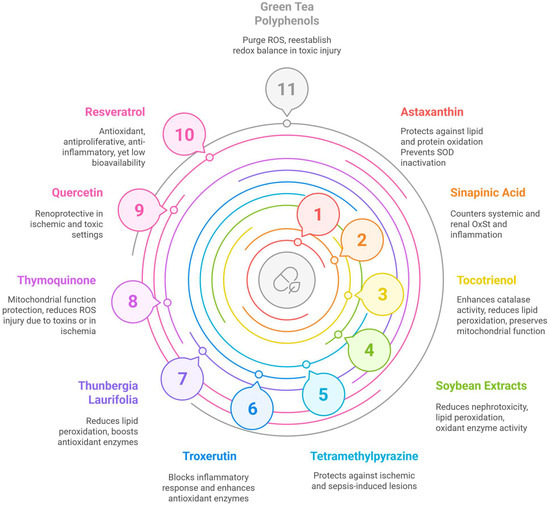 - Kamt, S.F.; Liu, J.; Yan, L.-J. Renal-Protective Roles of Lipoic Acid in Kidney Disease. Nutrients 2023, 15, 1732. [Google Scholar] [CrossRef]