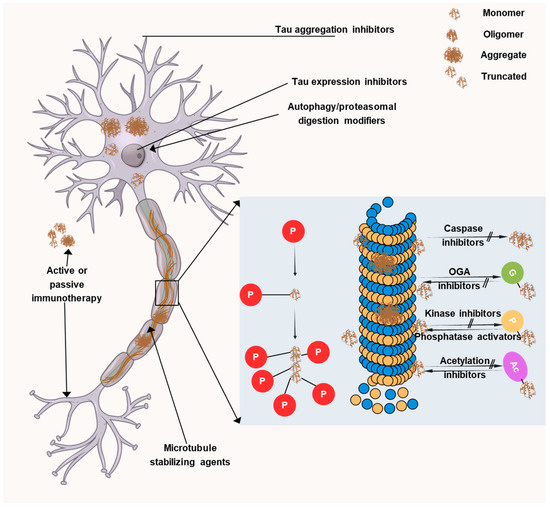 - Congdon, E.E.; Jiang, Y.; Sigurdsson, E.M. Targeting tau only extracellularly is likely to be less efficacious than targeting it both intra-and extracellularly. Semin. Cell Dev. Biol. 2022, 126, 125–137. [Google Scholar] [CrossRef]