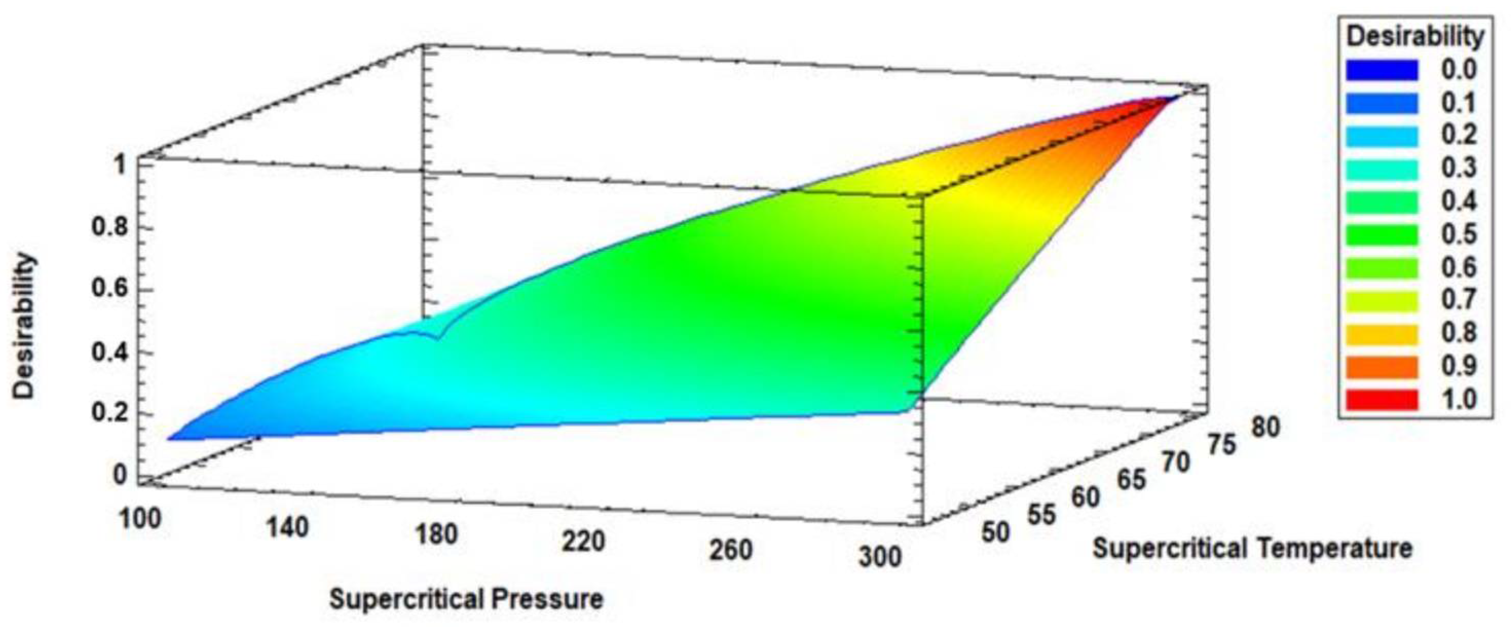 | Response Variables | Supercritical CO2 Pressure | Supercritical CO2 Temperature | Stationary Point | Optimized Values |