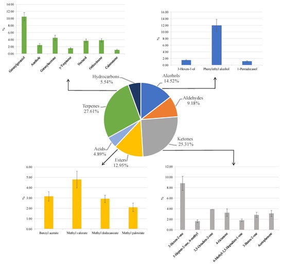 In addition, the content of carotenoids and chlorophylls in our sample of Sicilian PMOLs was determined by a colorimetric method described by Lichtenthaler and Buschmann [39]. The levels of these pigments in plant tissues can serve as valuable indicators of the ideal growth conditions for plants. Moreover, these pigments are not only important for the photosynthetic efficiency of the plant, but also reflect the adaptation of the plant to its environment in view of their role in protecting the plant against oxidative stress, especially under stressful environmental conditions.