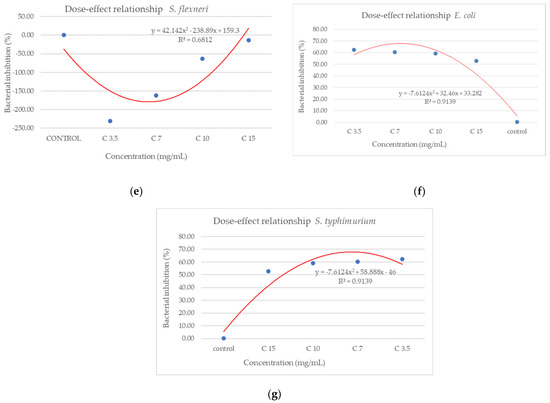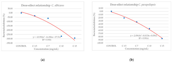 The presented results represent the average of the obtained values, along with their standard deviation (SD). All calculations were performed using the statistical software IBM SPSS 22. Antimicrobial activity rates, figures, and dose–effect relationships were performed using Microsoft Excel 365 (Version 2208, Washington, DC, USA).