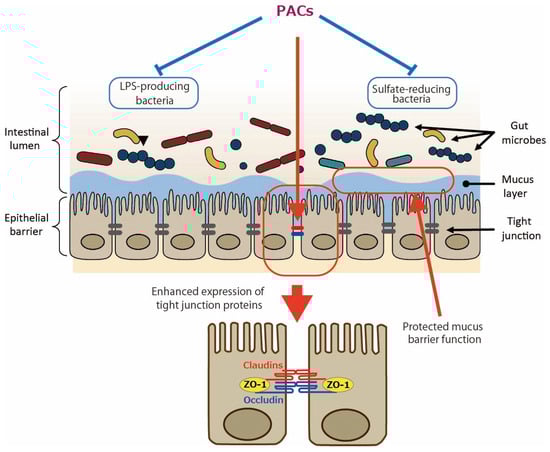 PACs upregulate tight junction proteins (e.g., occludin, ZO-1), which improve intestinal barrier integrity and reduce permeability [9,10,11,12]. This helps prevent harmful substances like lipopolysaccharides (LPS) from entering the bloodstream.