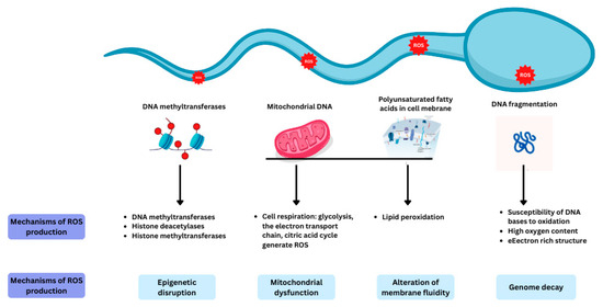 The mechanisms involved in ROS production within spermatozoa. Reproduced with permission from Ben Khalifa, Nutrients; published by MDPI 2025 [12].