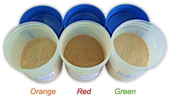 Roots from three varieties of O. ficus-indica cactus (orange, green, and red) were collected from two distinct semi-arid regions in northern Algeria. The orange variety was harvested from the El-Kseur region, while the green and red varieties were sourced from the At-Wasif province. After collection, the roots were transported to the laboratory, where they were meticulously washed with distilled water to eliminate soil and other impurities. The cleaned roots were then cut into small cubes, freeze-dried using an LSCBasic Christ freez-dryer (Martin Christ Gefriertrocknungsanlagen GmbH, Osterode am Harz, Germany) to best preserve their phytochemical composition, and subsequently ground into a fine powder. This final biomass was stored in sealed containers under dry conditions prior to extraction (Figure 1).