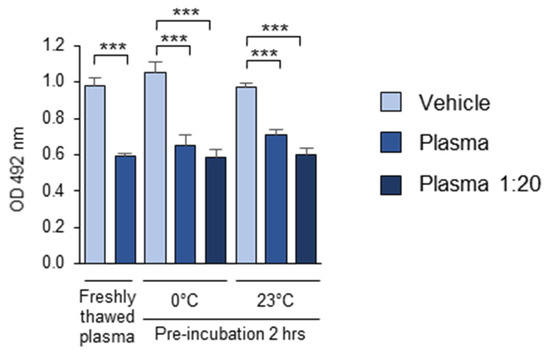 Concentration dependence of masking activity. The experiment was performed according to the standard procedure described in the “Methods” section, except that different plasma dilutions were used. ns—non-significant, *** p ≤ 0.001.