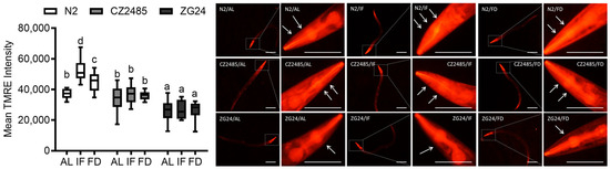 3.4. Fasting Enhances Mitochondrial Function in Wild-Type but Not in AHR Mutants