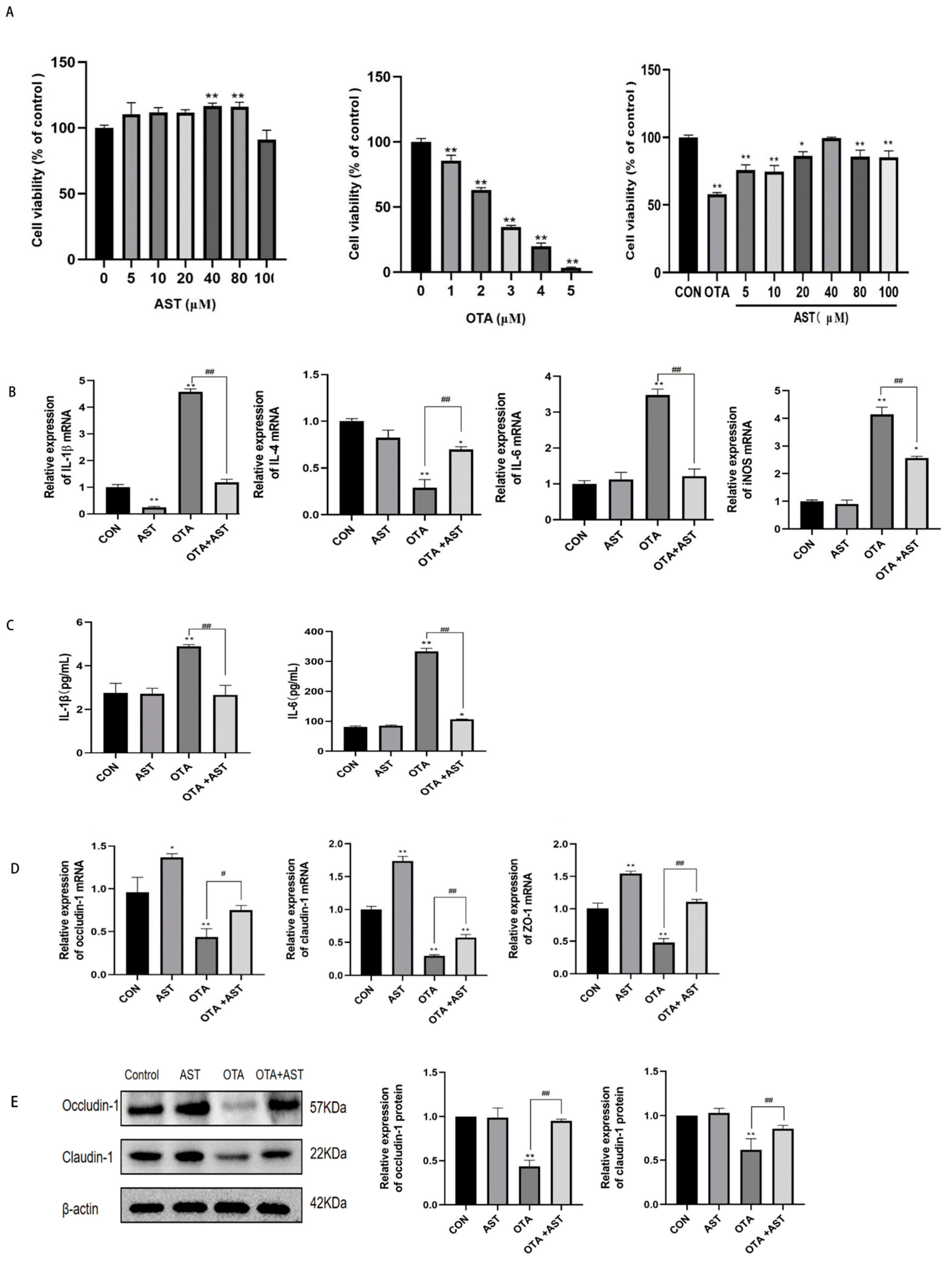 3.4. AST Alleviated the Inflammatory Damage Caused by OTA on CSIECs