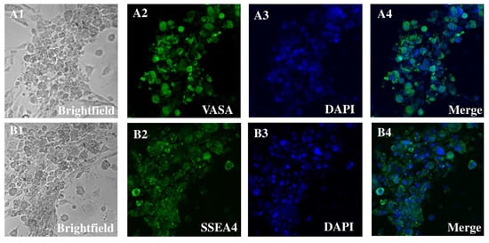 - Amirian, M.; Azizi, H.; Hashemi Karoii, D.; Skutella, T. VASA protein and gene expression analysis of human non-obstructive azoospermia and normal by immunohistochemistry, immunocytochemistry, and bioinformatics analysis. Sci. Rep. 2022, 12, 17259. [Google Scholar] [CrossRef]