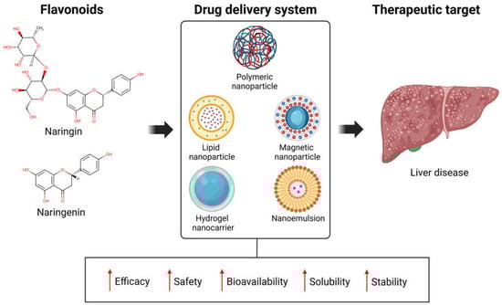 Recently, a model of ethanol damage evaluated the efficacy of Scenedesmus-derived extracellular vesicles loaded with NAR. This release system, combined with NAR, allowed an increase in the dose of this flavonoid from 0.2 to 1.0 mg/mL, attenuated the increase in liver damage markers: aspartate aminotransferase (AST), alanine aminotransferase (ALT), alkaline phosphatase (ALP), and triglycerides (TG). Also, it improved oxidative damage and liver inflammation. Activation of the nuclear factor Nrf2/HO-1 and regulation of the expression of CYP2E1 were observed; a modification in the intestinal microbiota composition was also observed. Pharmacologically, this formulation allows a sustained release of the active ingredient and high cytocompatibility. In summary, this new formulation improves the efficacy of NAR during the alcohol-induced liver damage experimentally [43].