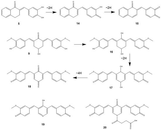 Owing to the chemical and biochemical shortcomings of curcumin (I), there is an ongoing interest in the synthesis of more stable and effective cyclic analogs of C5-curcuminoids (V) [22,23]. Their pleiotropic feature may be responsible for the coexisting antioxidant, multiple drug resistance (MDR) revertant, and other beneficial properties of these derivatives [24]. However, studies on the antioxidant abilities of cyclic C5-curcuminoids are limited.