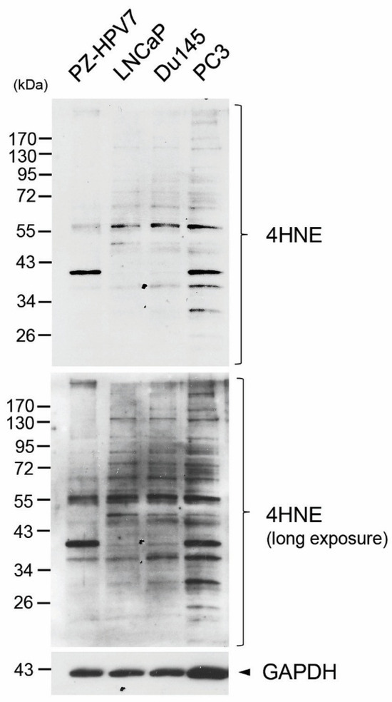 3.2. Elevated Production of 4HNE Protein Adducts in Human Prostate Cancer Cell Lines